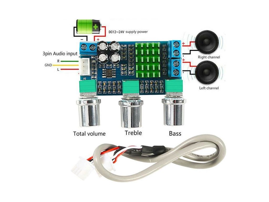 Zesilovač 2x50W ve třídě D s korekcemi, modul s TPA3116D2 Stereo zesilovač 2x50W ve třídě D s integrovanou ochranou proti přehřátí a zkratu.**Specifikace:**