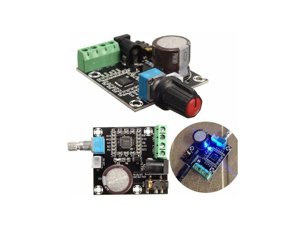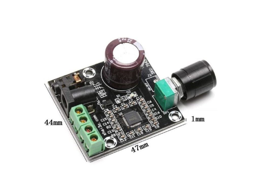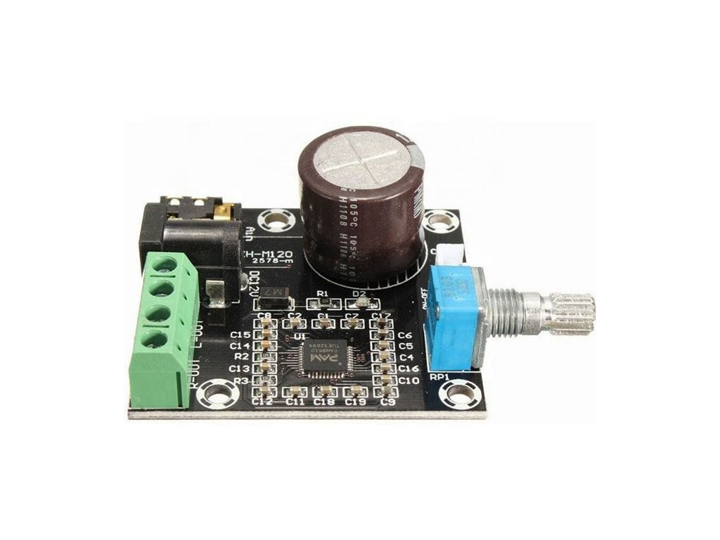 Zesilovač ve třídě D 2x15W, modul PAM8610 s potenciometrem Dvoukanálový stereo zesilovač 2x15W ve třídě D s integrovanou ochranou proti přehřátí a zkratu.**Specifikace:**