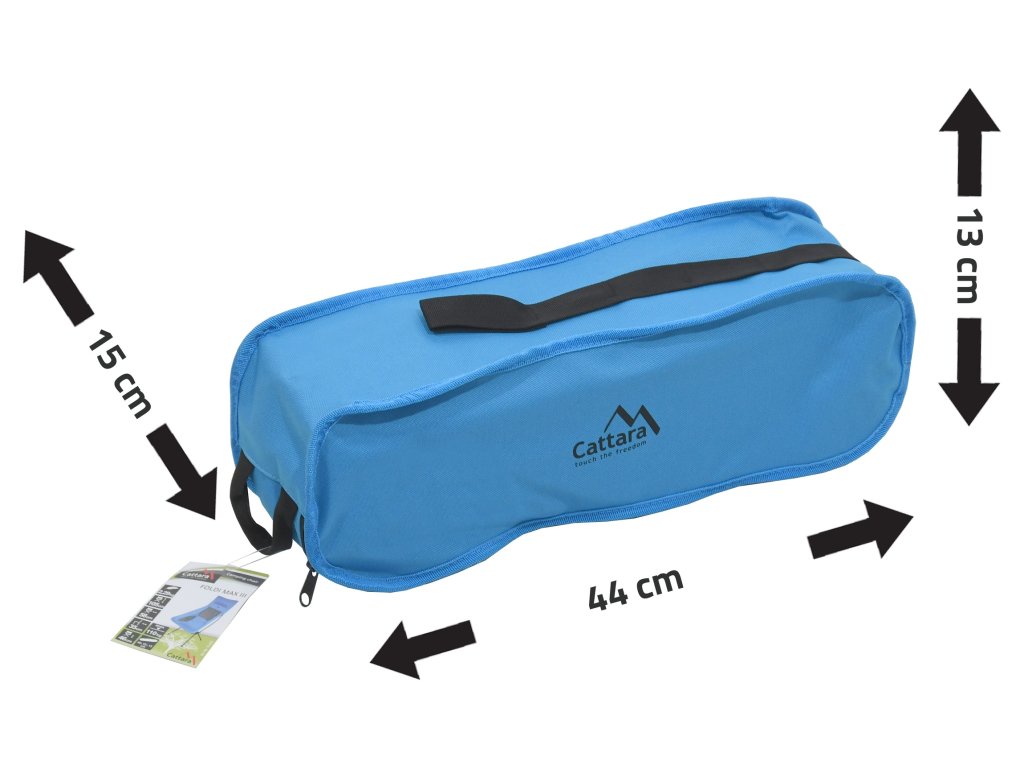 Židle je lehce přenosná díky svým malým rozměrům 44 x 15 x 13 cm ve složeném stavu.