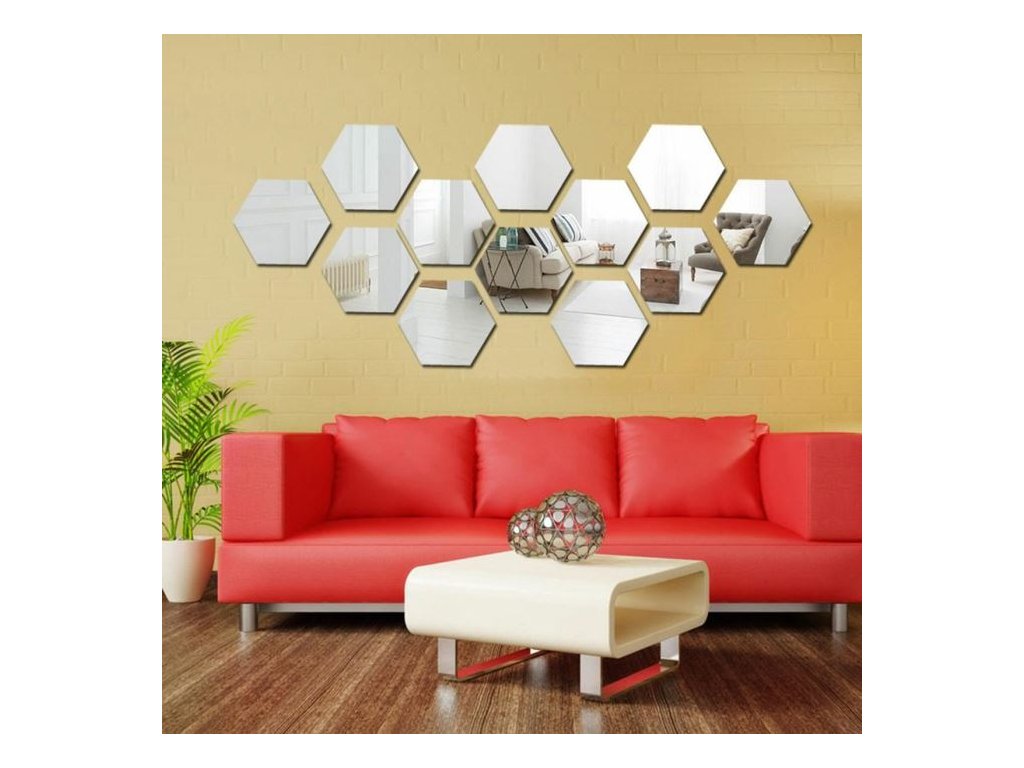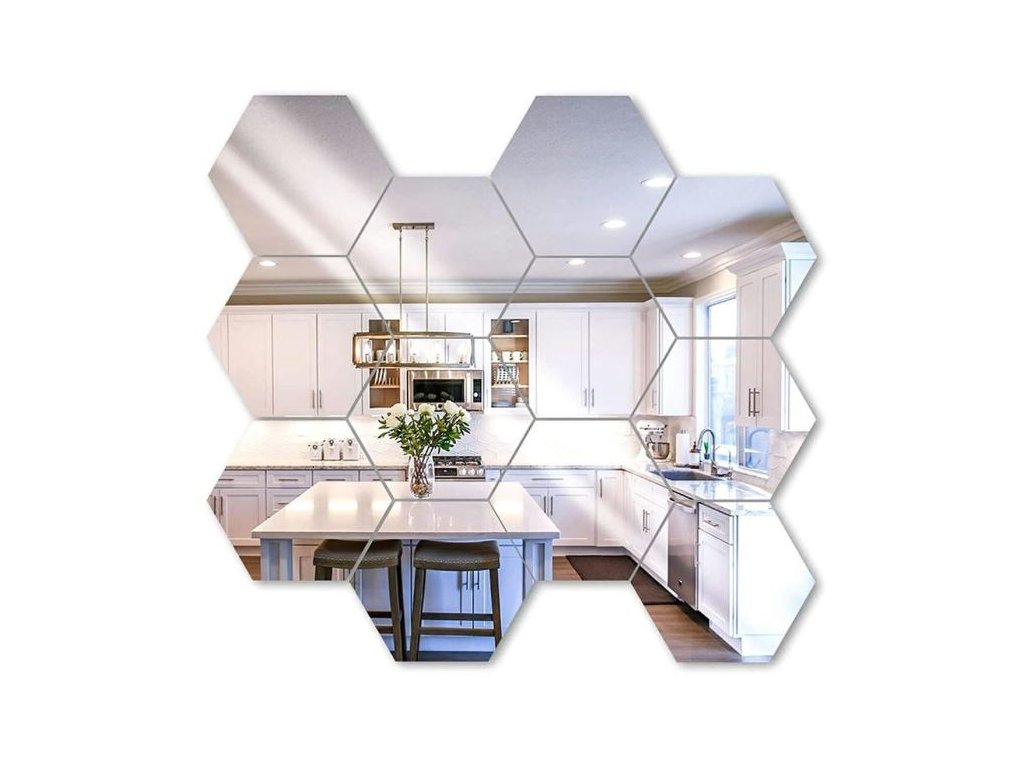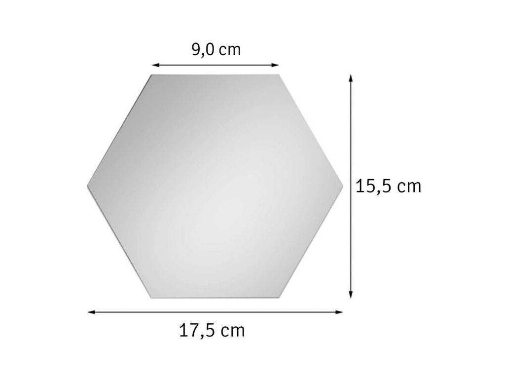 Zrcadlové samolepící šestiúhelníky 12ks Sada dekorativních nástěnných panelů ve tvaru šestiúhelníku - 12 akrylových zrcadel o rozměrech 17,5 cm x 15,5 cm. Perfektní způsob, jak využít prázdnou stěnu. Zrcadlo skvěle poslouží jako optické zvětšení prostoru. Dobře se hodí do předsíně jako nástavec na botník nebo jako estetický detail v koupelně. Šestiúhelníkový tvar usnadňuje nasazování samolepek a vytváření jednotné mozaiky z nich.Materiál: akryl
