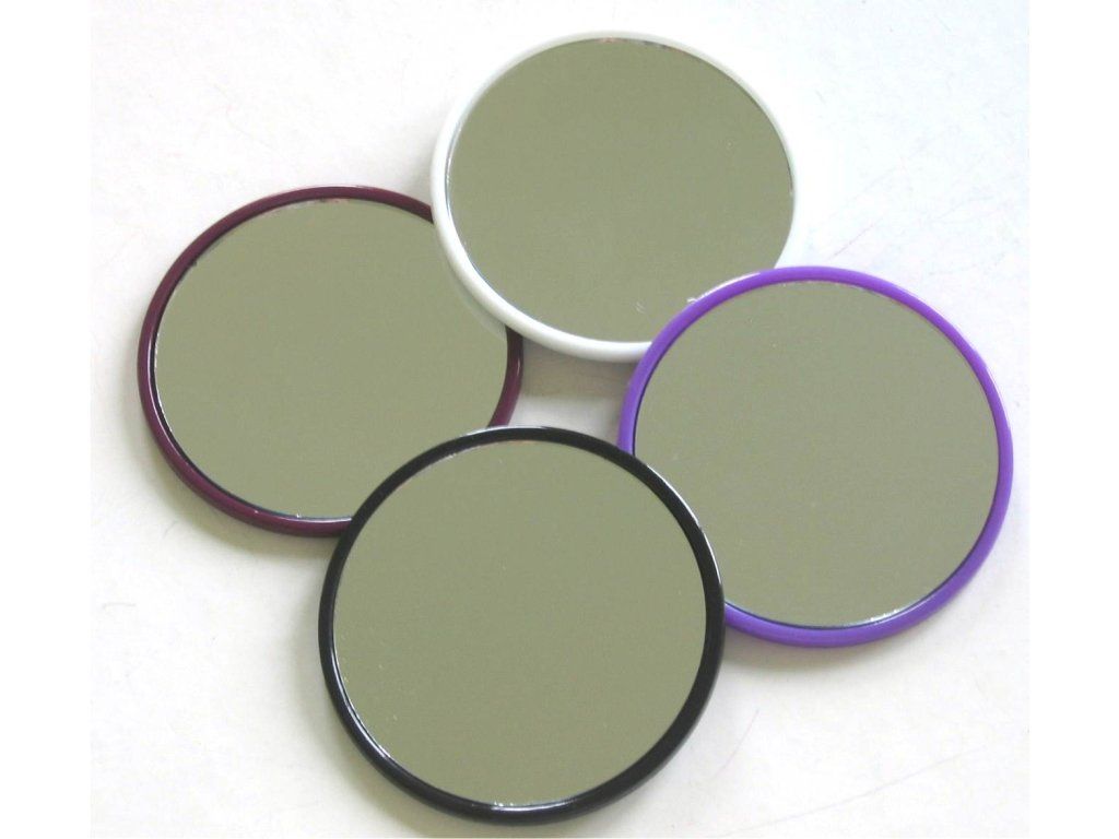 Obyčejné zrcátko do kabelky, plastový rám v mixu barev dle skladové zásoby, průměr 7 cm.EAN 8590786121805