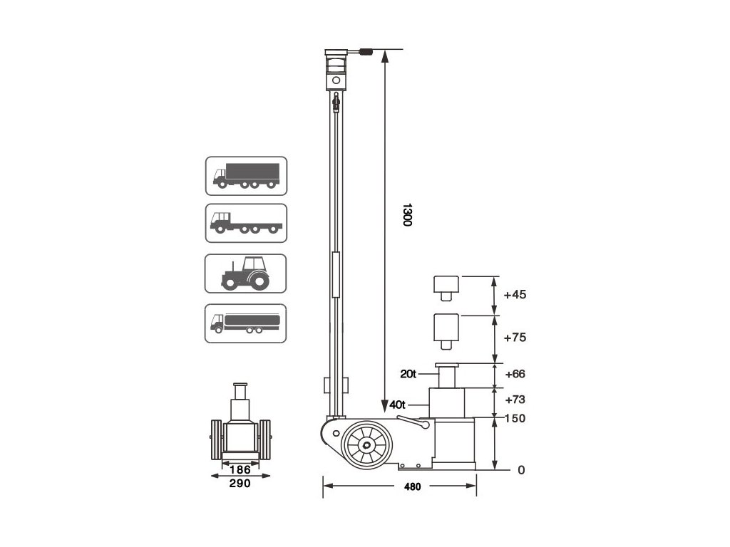 Zvedák pneumaticko-hydraulický S40-2EL, 40/20t, dvoupístový